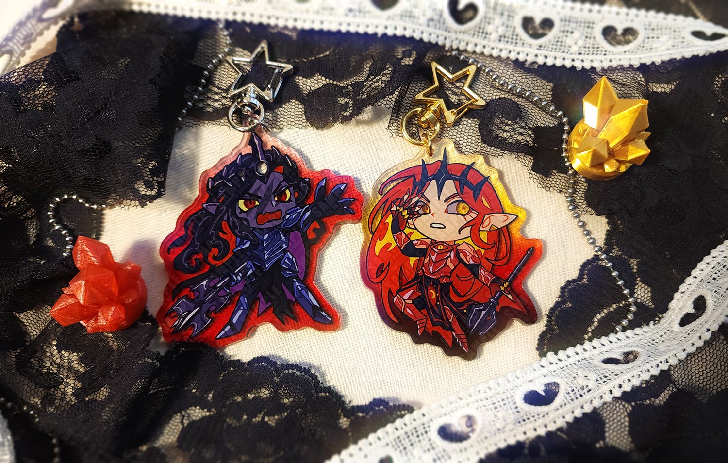 3'' acrylic charms featuring Melkor Bauglir (Morgoth) and Mairon (Sauron)